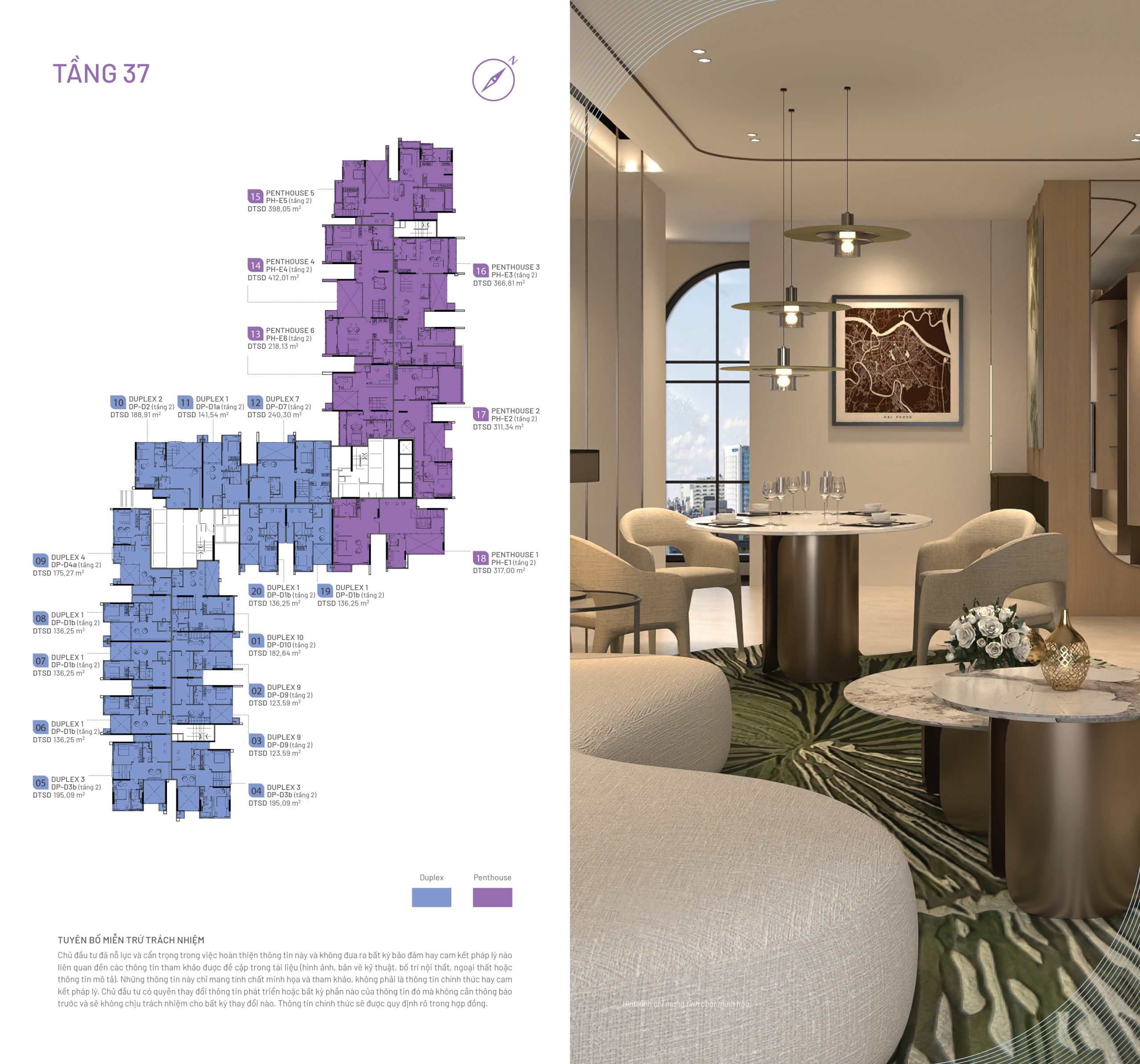 - Quy mô: 11.000 m² bao gồm 2 tòa tháp cao 37 tầng và 3 tầng hầm.